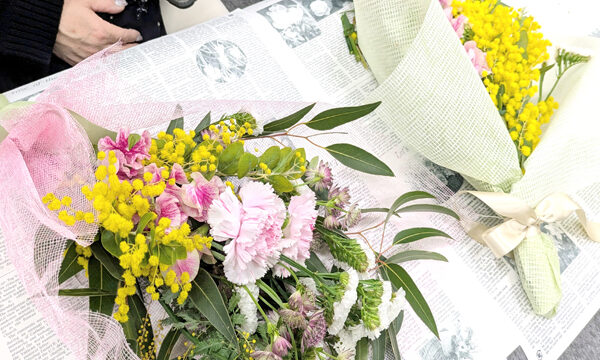 花の出張講座レッスン【フラワー講習 横浜】某保険会社様にてミモザのフラワー講習を開催/大きいフラワーアレンジメント教室 横浜
