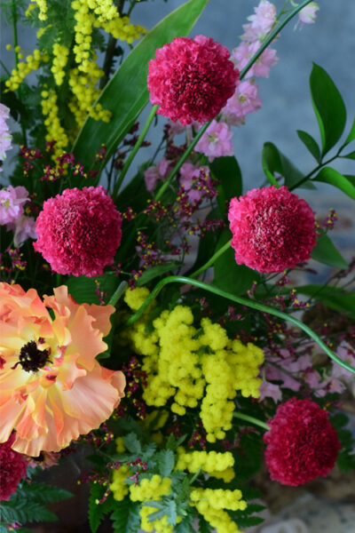 皆様もミモザと春の花を使って、楽しいフラワーアレンジメントを作ってみて下さい。