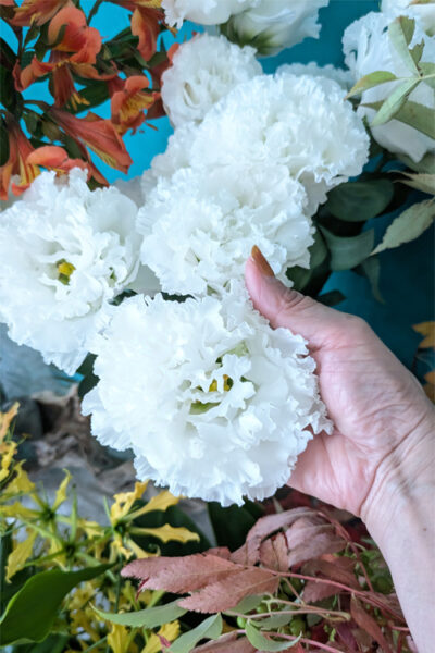 実は八重咲きの白いトルコキキョウは私が花を始めた頃、特別好きな花として愛でていた花でした。