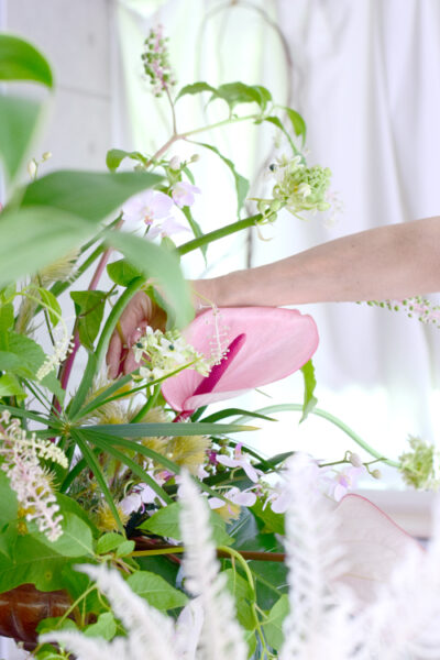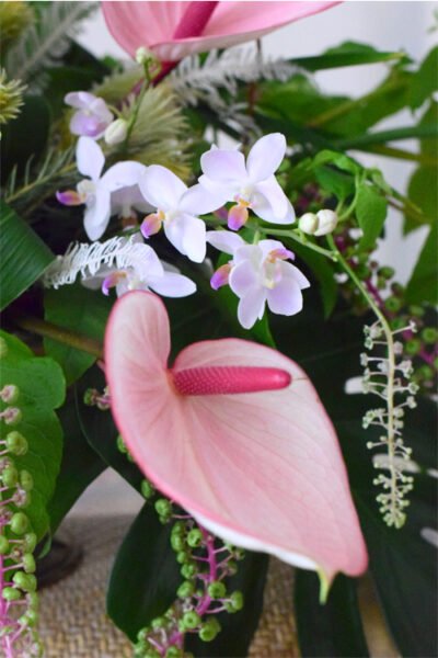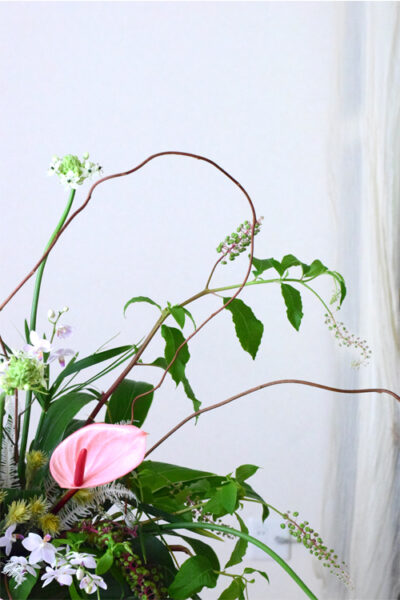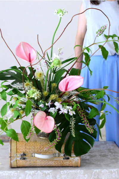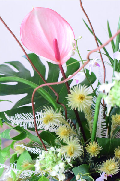 また、アンスリウムは花の向きが難しく、長く使うと更にバラバラな印象になりがちです。