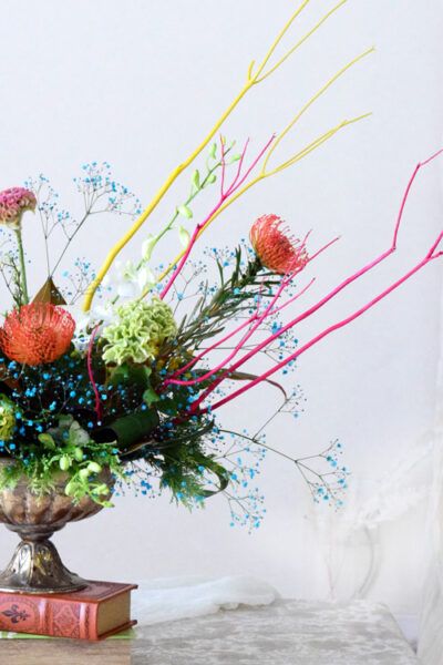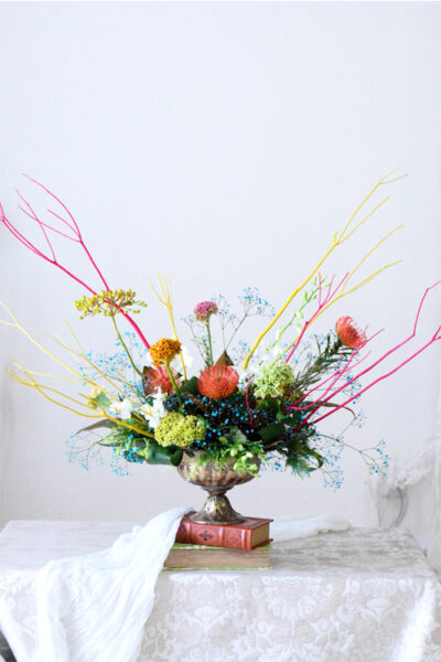 今回ご紹介したアレンジメントは、カラフルな色合わせで、私にとってもチャレンジになる色合わせでした。