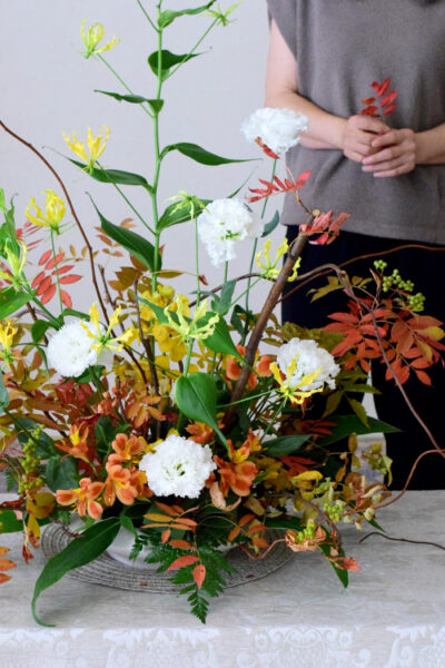 【フラワーアレンジメント 枝物】ナナカマドを使った枝物アレンジメント/大きいフラワーアレンジメント教室 横浜