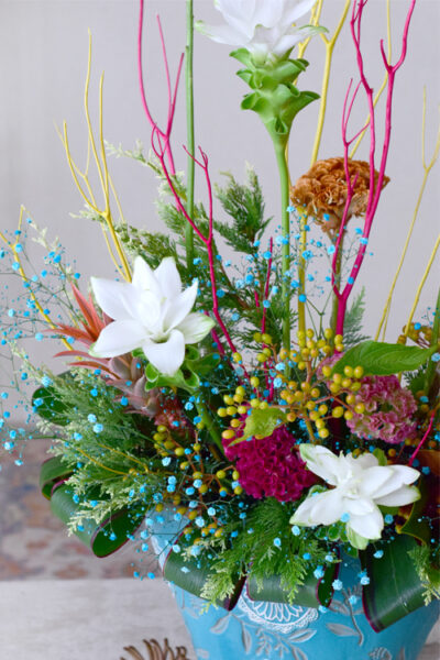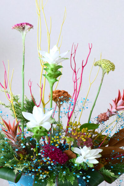 それは、カラフルな色づかいのトロピカルなアレンジメントの楽しさです。