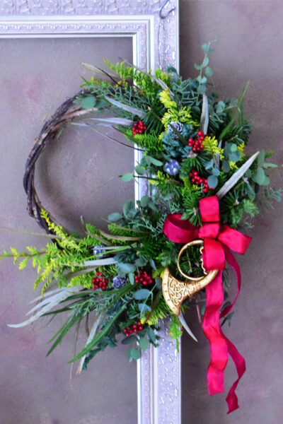 今年はナチュラルな野趣感のある、クリスマスリースを追加いたしました。