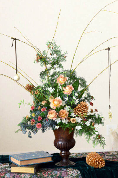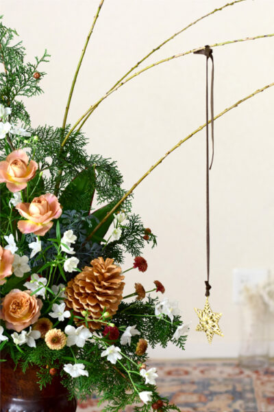 枝物やオーナメントがアクセントになっていますね。