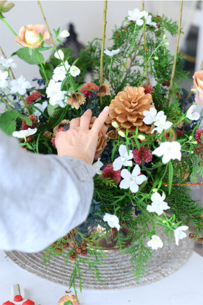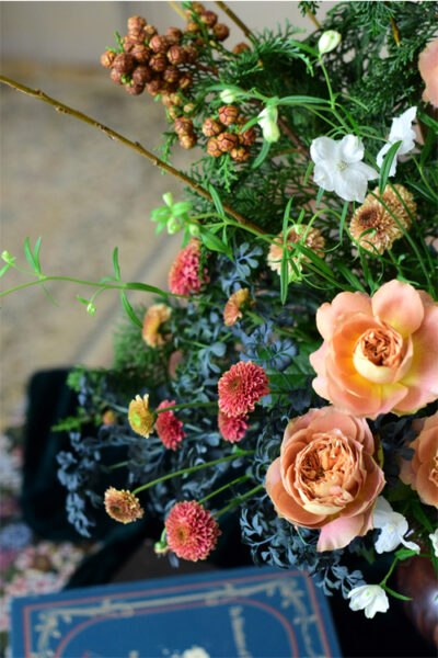 このような花の生け方が出来るようになったのも10月に参加させていただいた山手西洋館のハロウィン装飾イベントがきっかけのように思います。