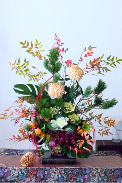 こちらのアレンジメントは12月にお正月のアレンジメントを生けたいとプライベートレッスンをご受講いただたアレンジメントです。