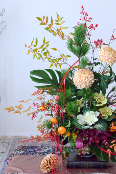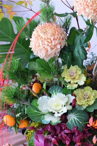 本日はそんな菊を使ったお正月アレンジメントをご紹介します。