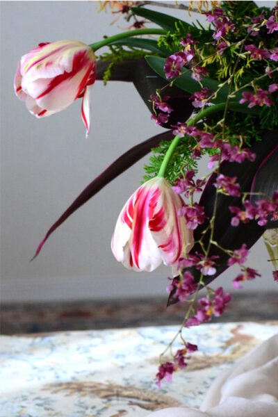 更に、チューリップだけではなく、小花の小さな動きも見逃さず生かして生けてみましょう。
