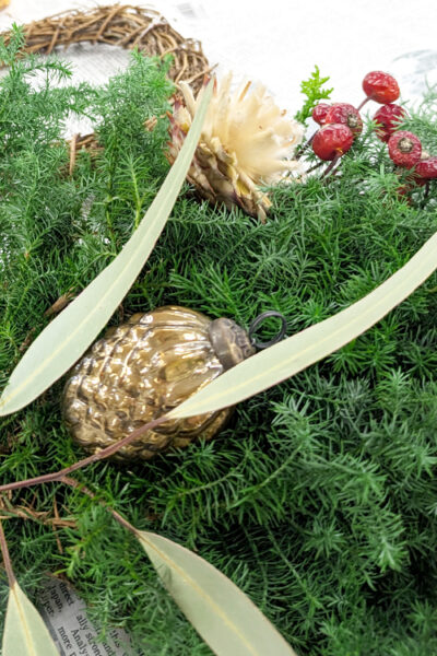 青々としたクリスマスグリーンと、オーナメント