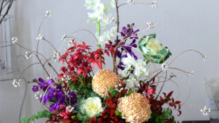 【フラワーアレンジメント 体験レツスン】ダリアの花で大きいフラワーアレンジメント