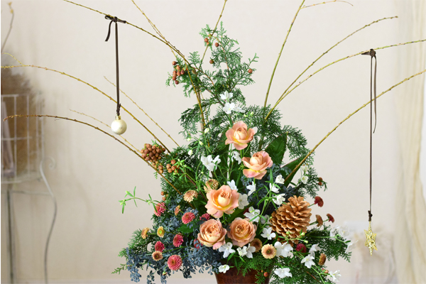 アレンジメント作品【フラワーアレンジメント クリスマス】バラと枝物で生けたトライアングルのクリスマスアレンジメント/大きいフラワーアレンジメント教室 横浜 こんにちは。 横浜市泉区 1mを越す大きいフラワーアレンジメント教室 ブーケットパフュームの相沢知美です。 本日はバラを多く使った大きいアレンジメントレッスンの花をご紹介します。 明る... 2025.12.12アレンジメント作品